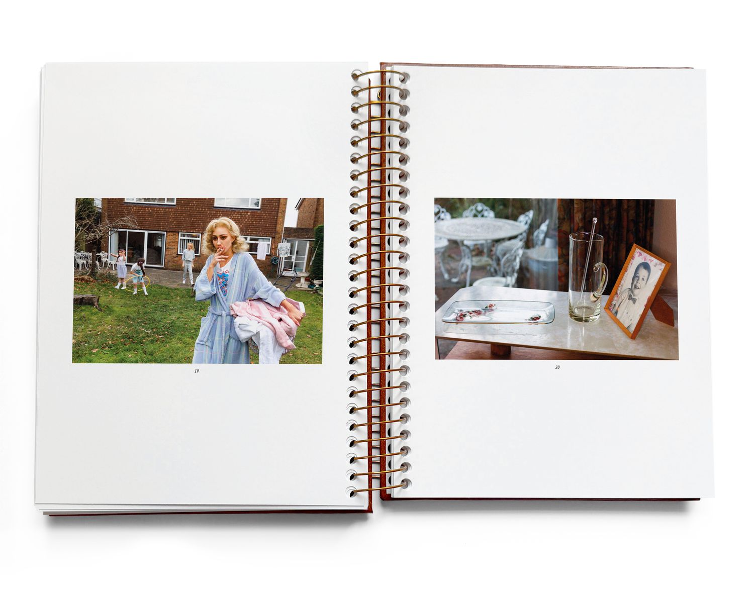 The book is designed as a late-seventies photo album. It is very closely modelled on an example acquired from eBay, complete with faux leather spongy board covers and a vintage gold metal spiral binding. The photographs are classic Martin Parr – only the subjects have been stylised. Julie Bullard (Nadia Lee Cohen), her sister Jane (played by Scarlett Carlos Clarke) and her mother, Sharon (Frankie Park), all have familial prosthetic noses. The sets are dressed, the characters costumed, the food prepared – it is a full-on fantasy of a very real looking world.